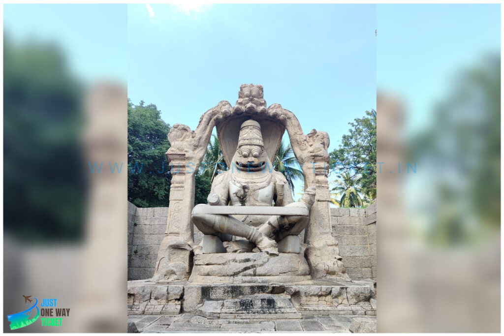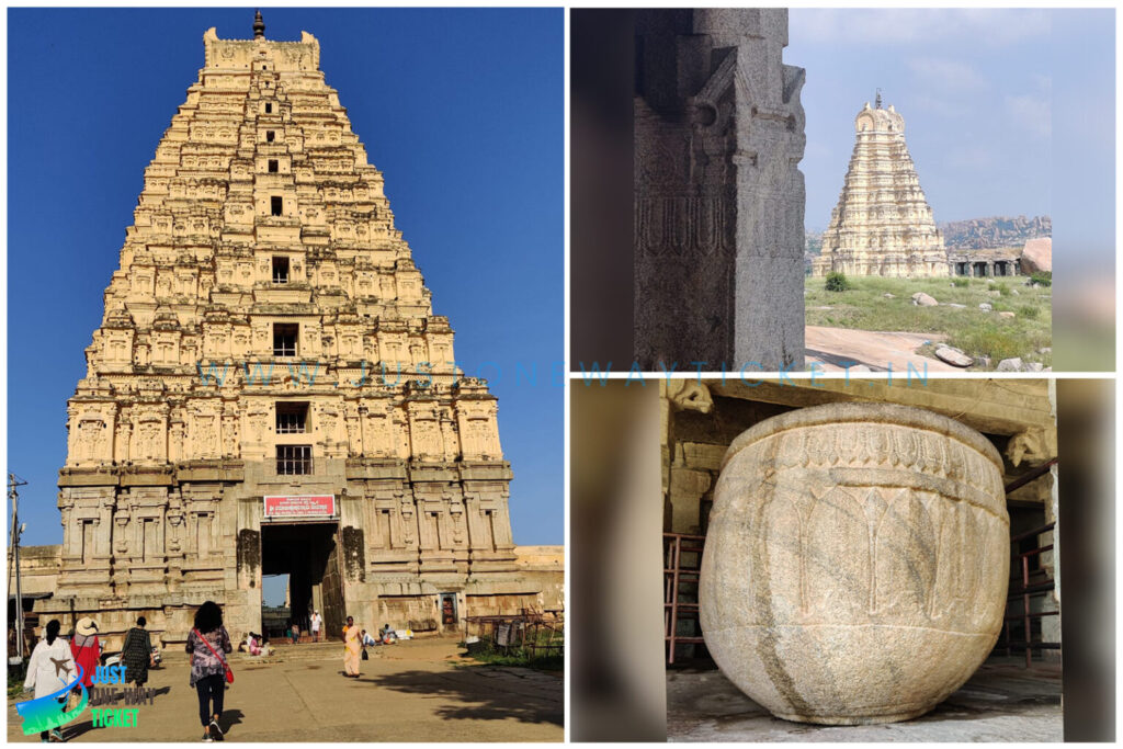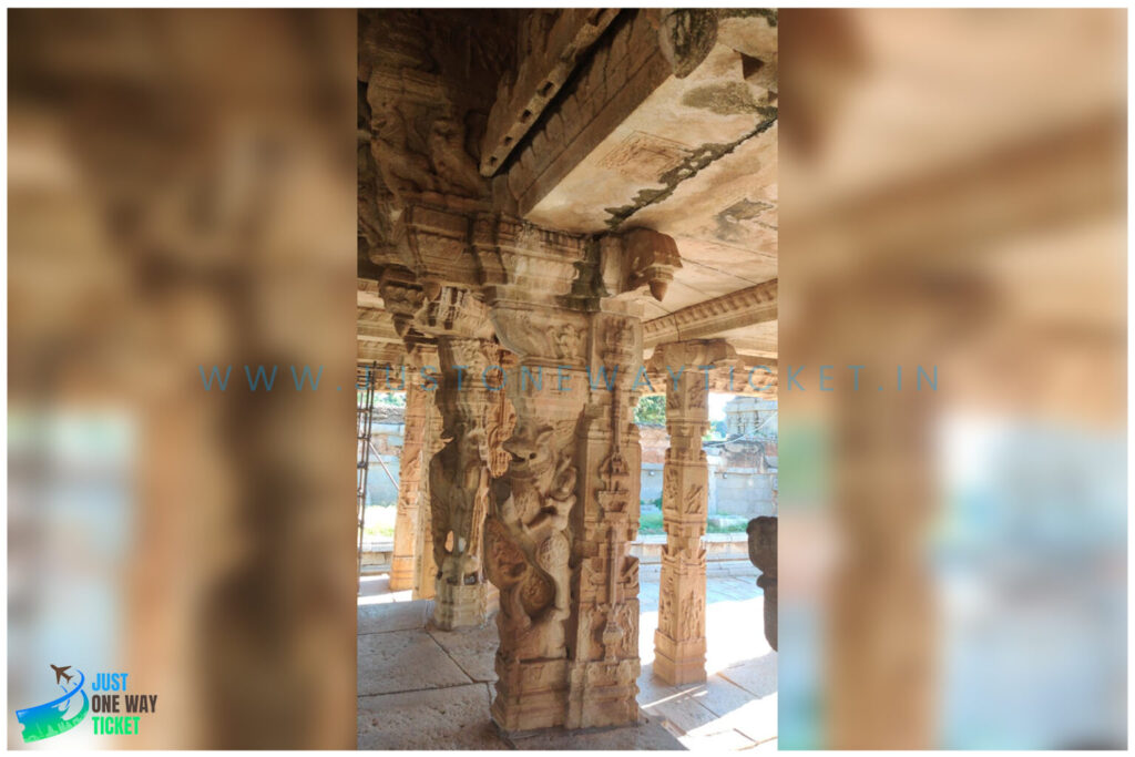 The ruling dynasty being Hindu with the primary deity as Lord Ganesha the king made sure that he pays his respects to the 18 feet Ganesh Idol Temple before he reaches the Virupaksha Temple. Both temples are connected with the beautiful pathway. Carved in one Monolithic stone the Ganesh Idol is superlatively beautiful with the pillared Sabha Mandap. Each pillar depicts a figurine of the visiting merchants from various countries. The idol was later destroyed but it still holds its charm and Aura.