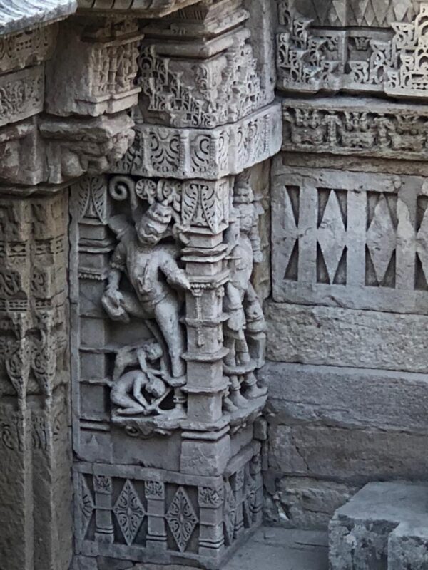 Sitting on the topmost step of the VAV, peering down to see the last level, I imagine women clad in Colorful Ghagras and anklets ascending down the steps, the only time they must have gotten in those days, fetching water. As they climb back with the earthen pots, I understand the labyrinth task, but the smiles, laughter, and chatter tell me all.